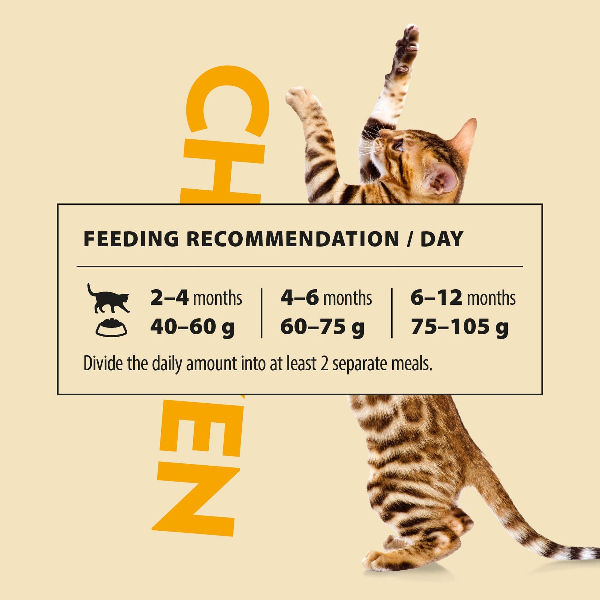Füttern Sie Ihre Katze stets mit Trockenfutter oder leicht angefeuchtetem Futter und stellen Sie ihr ausreichend Trinkwasser zur Verfügung. Der tägliche Nährstoffbedarf Ihrer Katze kann variieren; er hängt von ihrem Lebensraum, ihrer Größe, ihrem Alter und ihrem Aktivitätsniveau ab.