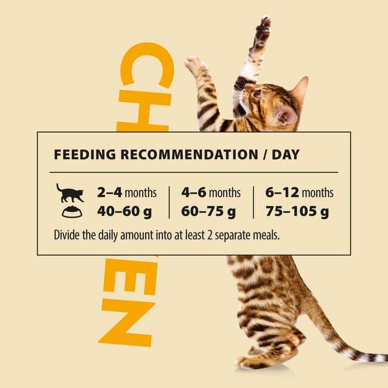 Füttern Sie Ihre Katze stets mit Trockenfutter oder leicht angefeuchtetem Futter und stellen Sie ihr ausreichend Trinkwasser zur Verfügung. Der tägliche Nährstoffbedarf Ihrer Katze kann variieren; er hängt von ihrem Lebensraum, ihrer Größe, ihrem Alter und ihrem Aktivitätsniveau ab. Die Fütterungstabelle zeigt die empfohlenen Tagesmengen.